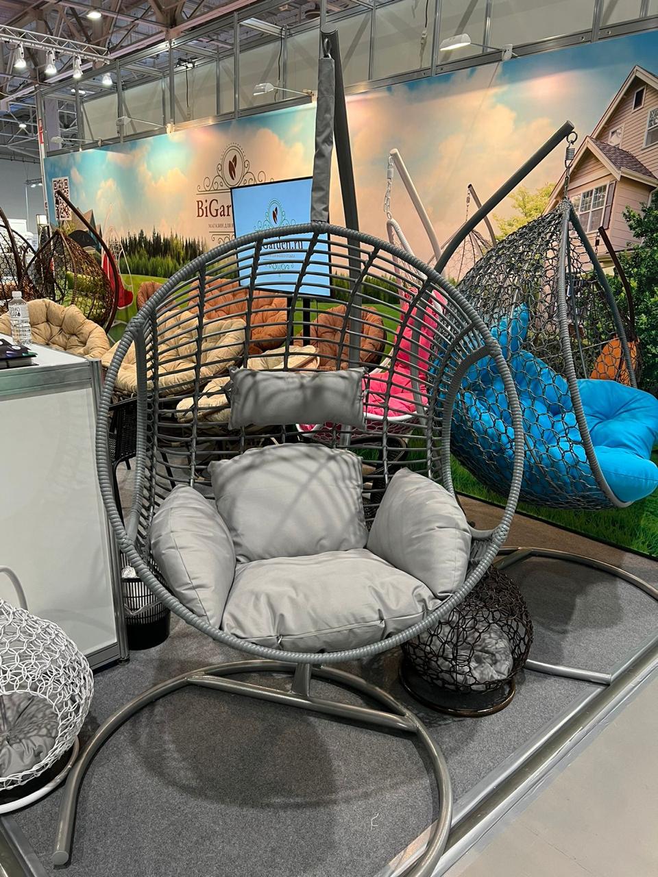- Подвесные кресла из искусственного ротанга. Каркасы из стали, плетение ручное. Устойчивы к осадкам и солнцу. Каждая деталь продумана.